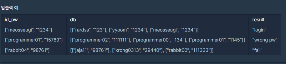 public String solution(String[] id_pw, String[][] db) {