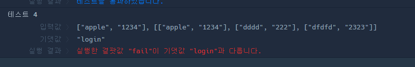 테스트 4 에서는 i=0 일때 login 이 가능하므로 결과 값이되어야하지만 반복문이 끝까지 돌기 때문에 결국