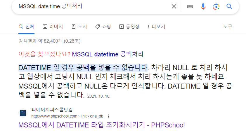 : CONVERT() 함수로 DATETIME 데이터 타입을 VARCHAR로 변환한 후 IS NULL 조건으로 처리한 데이터