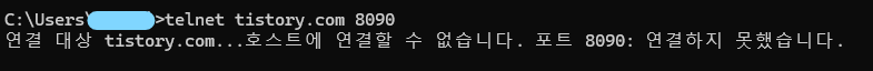 telnet 도메인 포트번호 // 방법 1)
