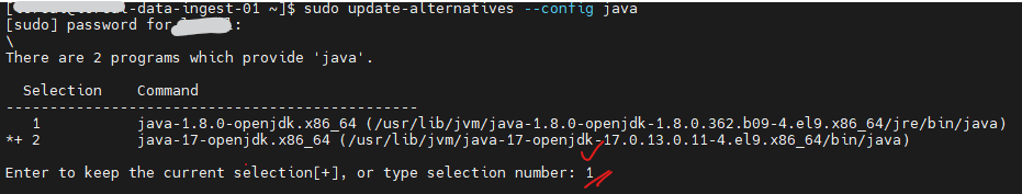 해당 명령어를 입력하면 설치된 jdk 경로와 함께 number를 선택할 수 있다.