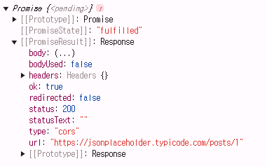 요청에 성공하면 다음과 같이 "fulfilled" 된 Promise 상태를 반환한다.